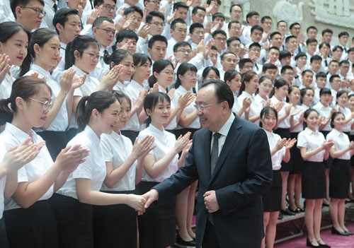 2019年8月5日,外交部党委书记齐玉在橄榄厅与2019年入部新干部见面,并发表了热情洋溢的讲话。