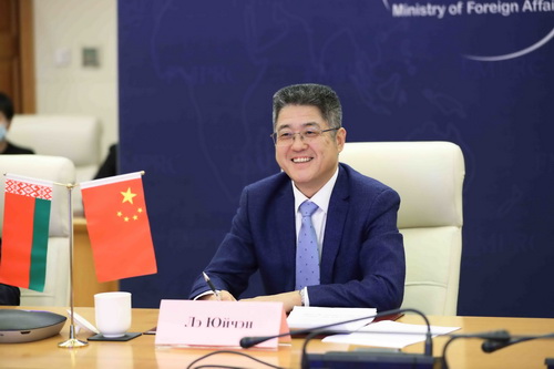 2021年12月22日,外交部副部长乐玉成同白俄罗斯副外长鲍里谢维奇举行中白外交部视频磋商,双方就双边关系、高层交往、务实合作以及共同关心的国际和地区问题交换意见。