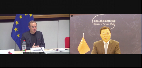 2021年12月20日,外交部副部长谢锋同欧盟对外行动署副秘书长莫拉通过视频方式举行第十五轮中欧外交政策磋商。
