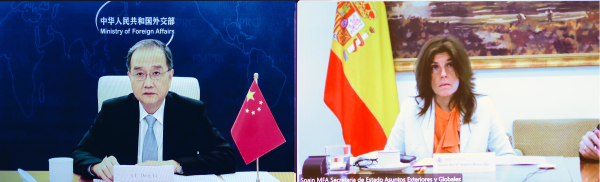 2022年4月27日,外交部副部长邓励同西班牙外交部国务秘书莫雷诺以视频方式举行政治磋商。