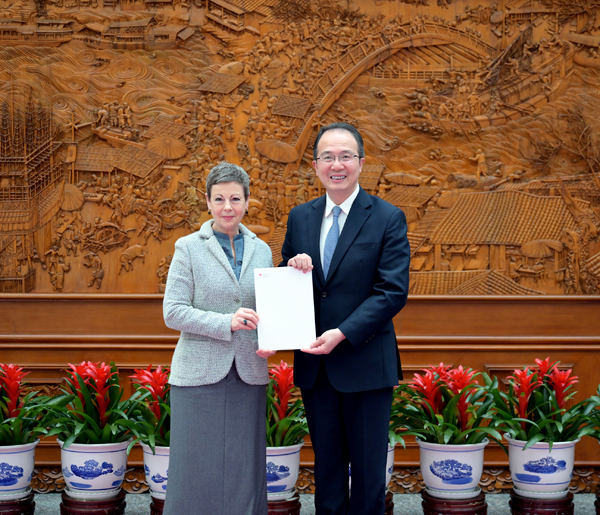 2025年11月4日,外交部部长助理兼礼宾司司长洪磊接受瑞士新任驻华大使马婷递交国书副本。马婷大使于11月3日抵华。