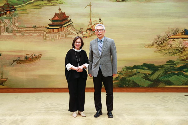 2025年11月25日,外交部部长助理蔡伟会见即将离任回国的苏里南驻华大使张碧芬。