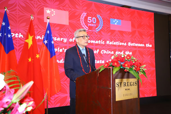 萨摩亚驻华大使马里纳表示,50年前,萨摩亚和中国基于共同愿景和相互尊重原则建立外交关系。萨方坚定支持一个中国原则,这是两国关系的政治基础。50年来,两国友谊坚如磐石,各领域合作成果丰硕,共同应对全球挑战。萨方愿同中方继续深化双边关系,更好造福两国人民,树立太平洋地区友谊与合作的标杆。
