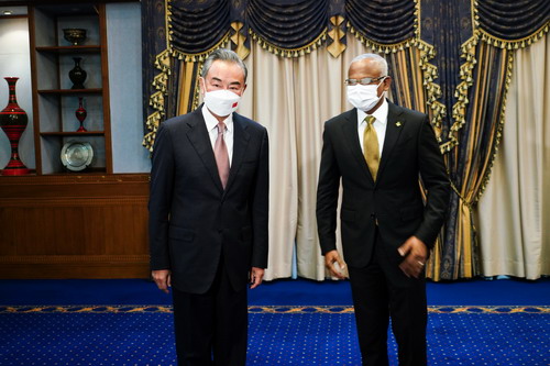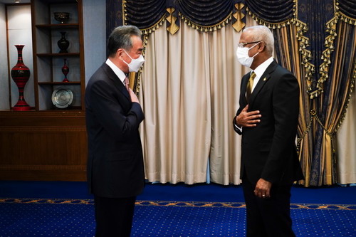 当地时间2022年1月8日,马尔代夫总统萨利赫在马累会见应邀访马的国务委员兼外长王毅。