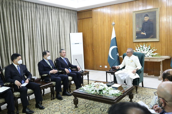 当地时间2022年3月22日,巴基斯坦总统阿尔维在伊斯兰堡总统府会见正在访巴的国务委员兼外长王毅。