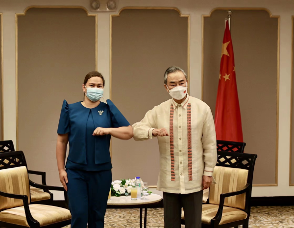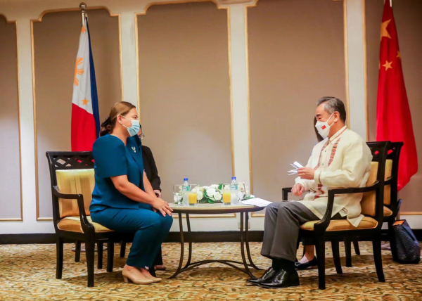王毅祝贺莎拉当选菲副总统,转达习近平主席对杜特尔特前总统的亲切问候。王毅说,过去6年来,在习近平主席同杜特尔特前总统关心引领下,中菲关系实现转圜巩固、提质升级。中方赞赏菲方秉持独立自主精神,捍卫民族尊严,加快国家发展,愿根据菲新一届政府施政重点和人民愿望需求,深化双方农业、基建、能源和人文四大重点领域合作,更好惠及两国人民。