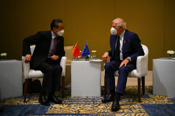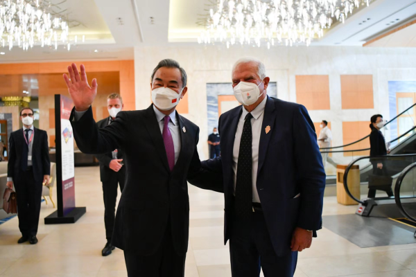 当地时间2022年7月7日,国务委员兼外长王毅在巴厘岛出席二十国集团外长会期间会见欧盟外交与安全政策高级代表博雷利。