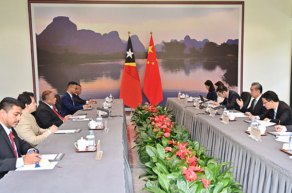 王毅表示,中国是最早承认东帝汶独立、最早同东建交的国家。建交以来,双边关系取得长足发展,两国友好深入人心。去年9月,习近平主席同夏纳纳总理共同宣布将中东关系提升为全面战略伙伴关系,实现双边关系的历史性跨越。中方愿继续做东帝汶人民可以信赖的朋友、可以依靠的伙伴,坚定支持东帝汶走符合本国国情的发展道路,在国际地区事务中发挥更大作用。双方要传承相互信任、合作共赢的优良传统,落实好两国领导人的重要共识,推动全面战略伙伴关系持续提质升级。