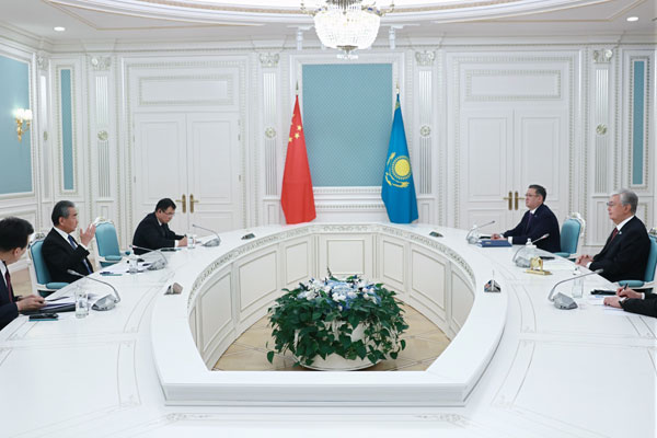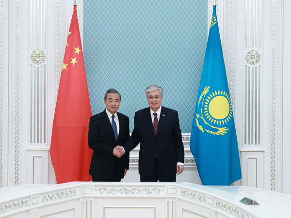 当地时间2024年5月20日,哈萨克斯坦总统托卡耶夫在阿斯塔纳会见中共中央政治局委员、外交部长王毅。