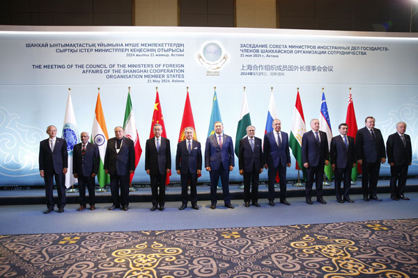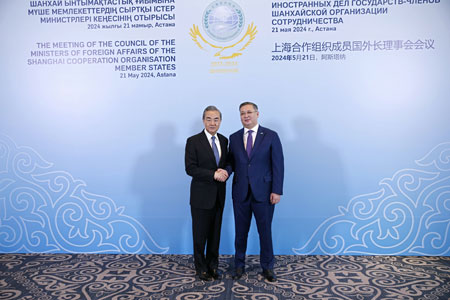 当地时间2024年5月21日,中共中央政治局委员、外交部长王毅在阿斯塔纳出席上海合作组织成员国外长理事会会议。