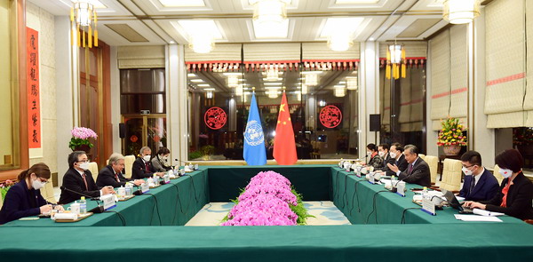 2022年2月5日,国务委员兼外长王毅会见来华出席北京冬奥会开幕式的联合国秘书长古特雷斯。