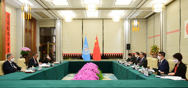 2022年2月5日,国务委员兼外长王毅会见来华出席北京冬奥会开幕式的世界卫生组织总干事谭德塞。