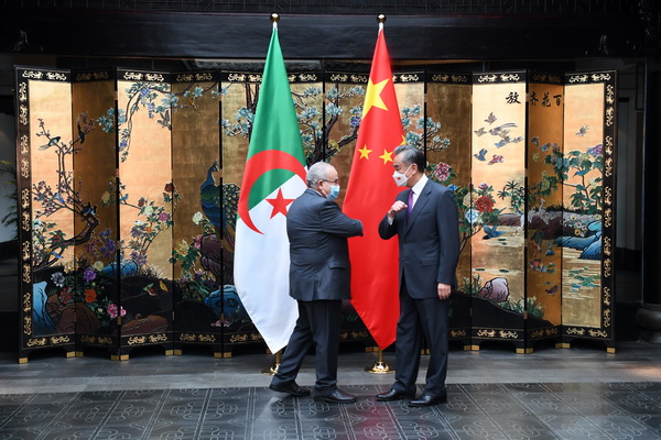2022年3月20日,国务委员兼外长王毅同阿尔及利亚外长拉马拉在会谈后共同会见记者。