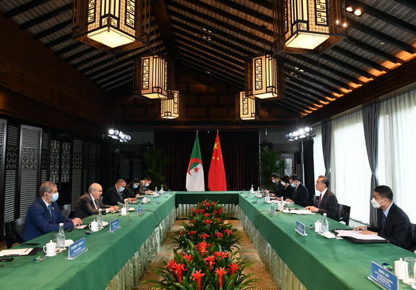 2022年3月20日,王毅国务委员兼外长同阿尔及利亚外长拉马拉在安徽屯溪举行会谈。