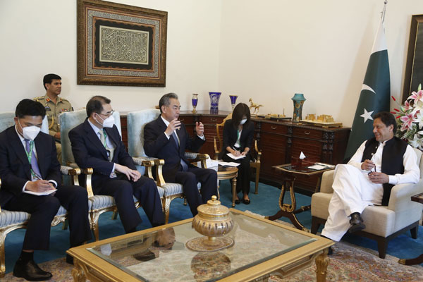 当地时间2022年3月22日,巴基斯坦总理伊姆兰·汗在伊斯兰堡总理府会见国务委员兼外长王毅。