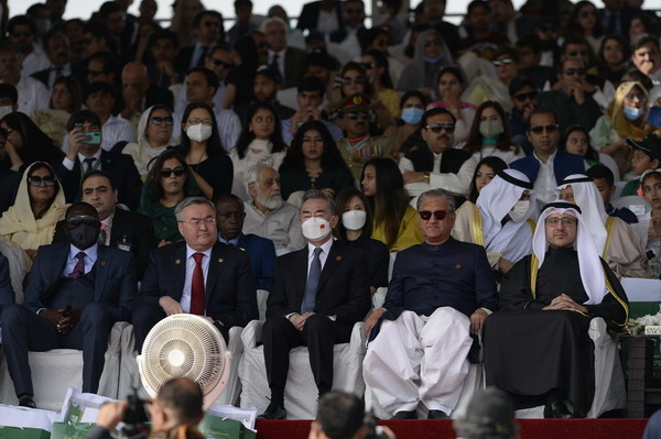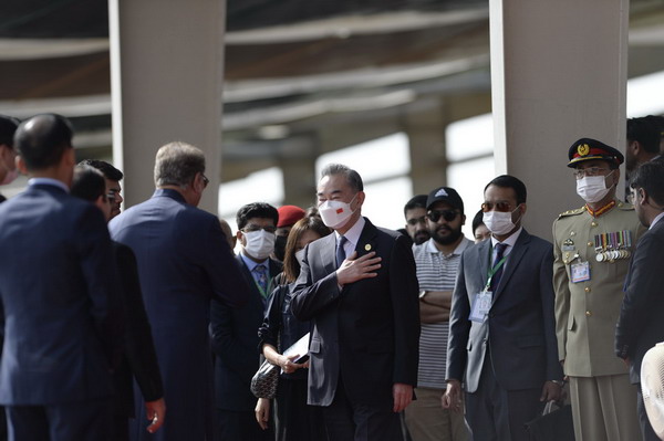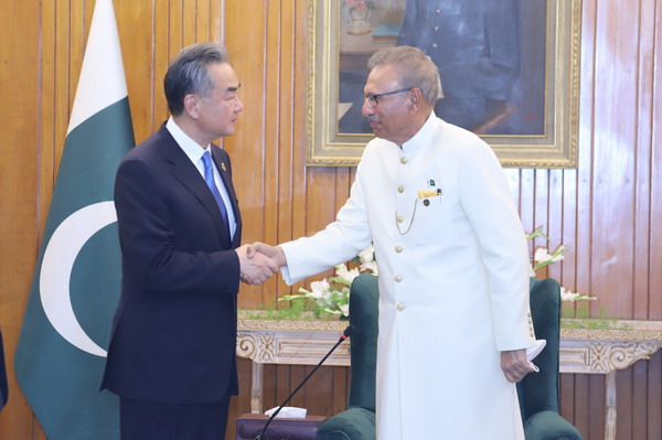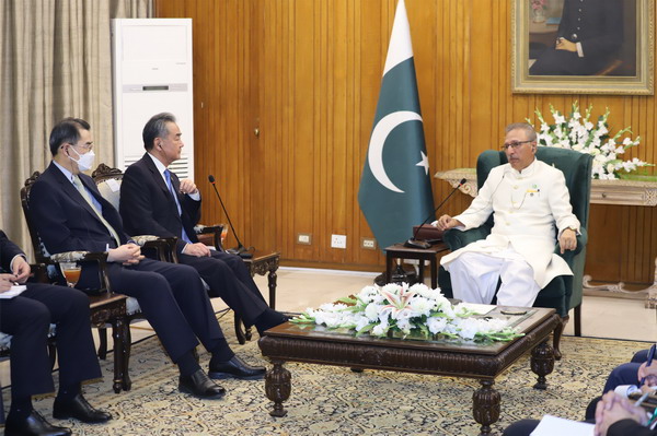 当地时间2022年3月22日,巴基斯坦总统阿尔维在伊斯兰堡总统府会见正在访巴的国务委员兼外长王毅。