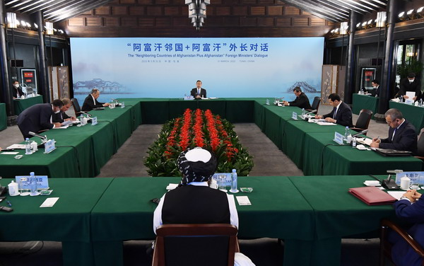 2022年3月31日,国务委员兼外长王毅在安徽屯溪主持阿富汗邻国与阿临时政府首次外长对话会。阿富汗邻国协调合作机制成员国外长和代表、阿临时政府代理外长穆塔基出席。卡塔尔副首相兼外交大臣穆罕默德、印度尼西亚外长蕾特诺作为嘉宾参加。