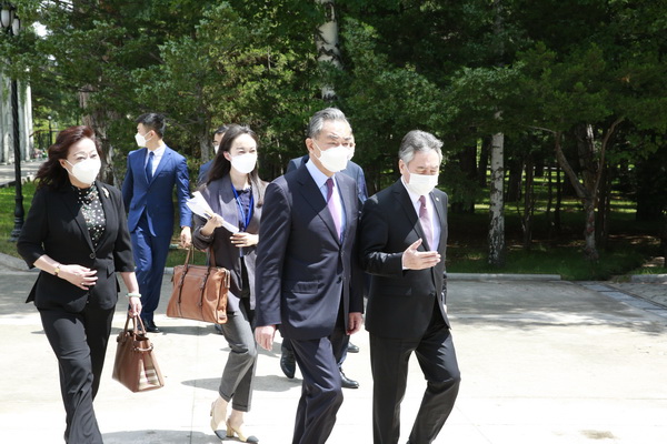 当地时间2022年7月30日,国务委员兼外长王毅在乔蓬阿塔同吉尔吉斯斯坦外长库鲁巴耶夫举行会谈。