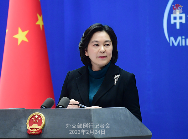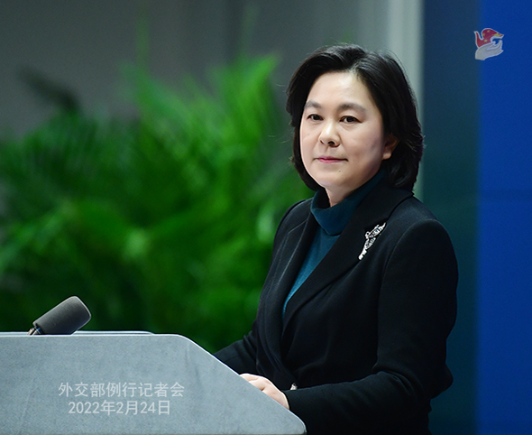 华春莹:中方密切关注着事态发展。乌克兰局势发展到今天,不是我们所希望看到的。所以我们持续呼吁各方保持克制,尽快通过对话协商解决问题,让局势缓和下来。