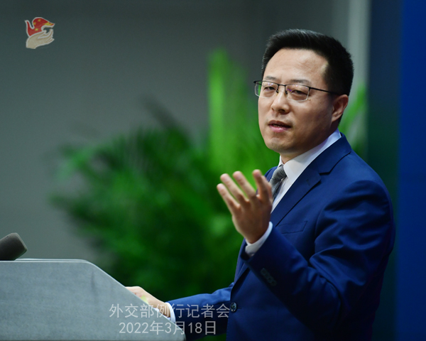 赵立坚:中方对乌克兰人道主义局势不断恶化深表担忧,对有关平民伤亡和难民人数增加的报道感到痛惜。当务之急是各方尽快停火止战,保持最大克制,保障平民安全和基本人道需求,防止发生更大规模的人道危机。中方高度重视乌克兰人道局势,提出了六点倡议主张。中国红十字会已经向乌克兰提供了三批人道援助物资。其中,第三批物资重点帮助乌克兰红十字会救助受冲突影响的流离失所的儿童。