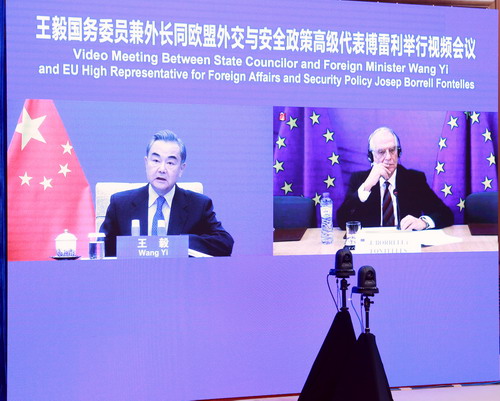 2021年2月8日,国务委员兼外长王毅同欧盟外交与安全政策高级代表博雷利举行视频会议。