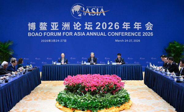 2026年3月25日上午,全国人大常委会委员长赵乐际在海南博鳌分别会见来华出席博鳌亚洲论坛2026年年会的阿塞拜疆国民会议主席加法罗娃、哈萨克斯坦第一副总理斯克利亚尔,下午集体会见博鳌亚洲论坛理事和高级顾问。