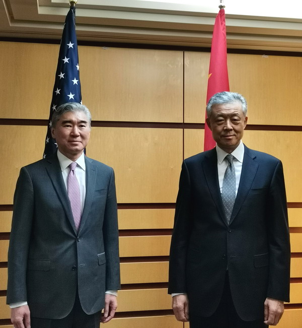2022年4月5日,中国政府朝鲜半岛事务特别代表刘晓明在华盛顿会见美国国务院对朝政策特别代表金圣,双方就朝鲜半岛形势交换意见。