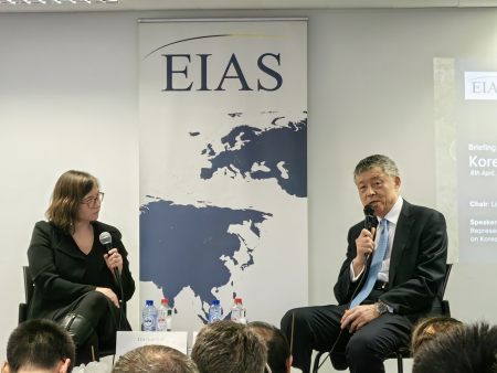 2023年4月6日,中国政府朝鲜半岛事务特别代表刘晓明访问欧盟总部期间,在欧洲亚洲问题研究所发表题为《践行全球安全倡议,推动朝鲜半岛问题政治解决进程》的主旨演讲,并回答主持人和听众有关朝鲜半岛形势、中朝关系、中韩关系、中欧关系、一带一路、全球安全倡议、联合国作用、核裁军、南海及亚太局势等提问。一些国家驻欧盟使节、欧盟官员、智库学者等70余人出席。