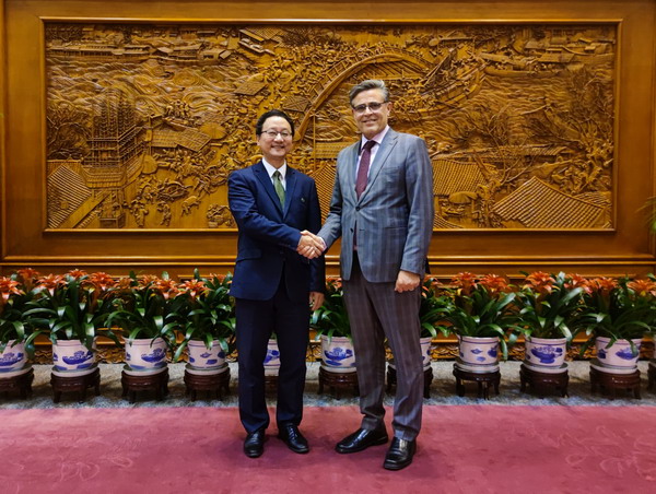 2023年12月14日,外交部亚洲司司长刘劲松会见巴基斯坦新任驻华大使哈什米。