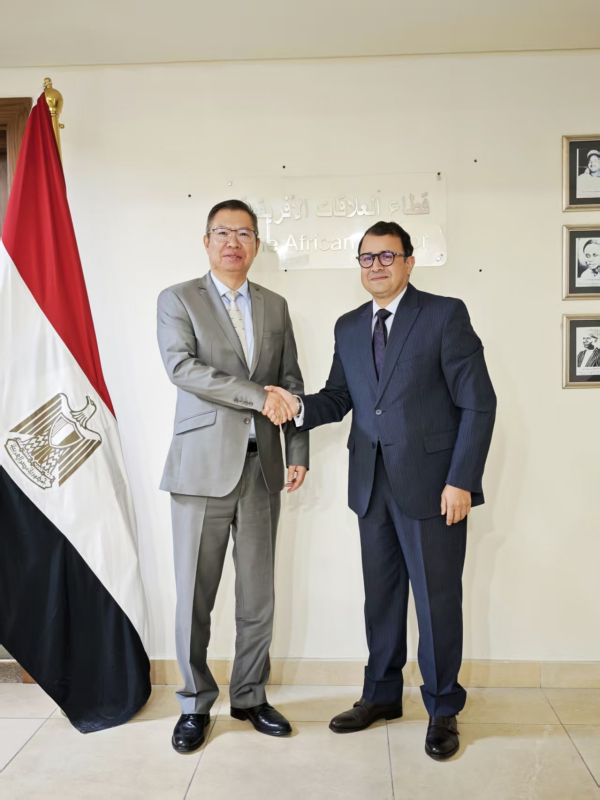 2025年12月9日,外交部非洲之角事务特使胡长春访问埃及,分别会见外交部部长助理贾德和谢里夫。驻埃及使馆公使张亚强等参加会见。