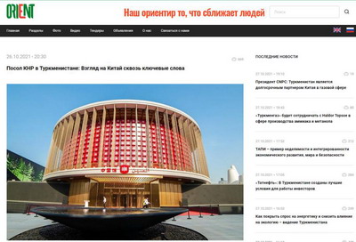 2021年10月26日,驻土库曼斯坦大使钱乃成在土“东方网”发表《中国驻土大使:关键词看中国》系列文章第十期。
