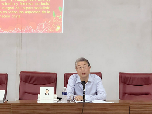 2023年2月8日,驻古巴大使马辉应邀在古共中央“尼科·洛佩斯”高级党校举行中共二十大精神专题讲座。古共中央委员、党校校长本栋,古共中央国际关系部副部长阿苏阿卡,古巴国家和政府干部高等学院院长德尔加多以及部分省级党校教师等60余人出席活动。