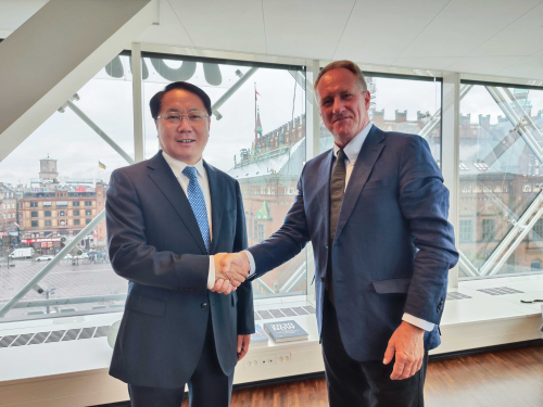 2024年8月21日,驻丹麦大使王雪峰会见丹麦工业联合会首席执行官索伦森。