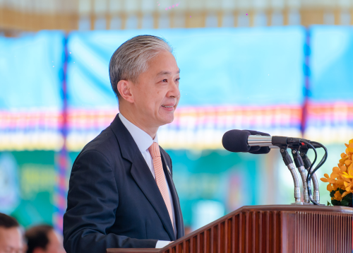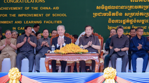 2024年10月26日,中国援柬埔寨教育环境与设施改善项目庆祝仪式在柬磅湛省宾起康中学举行。驻柬埔寨大使汪文斌与洪玛奈首相共同出席并致辞,奈萨文、孙占托、韩春纳洛、赛桑奥四位副首相及柬多位内阁成员和各界代表逾千人参加。