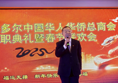 2025年1月12日,驻瓜亚基尔总领事高振廷出席厄瓜多尔中国华侨华人总商会换届就职典礼暨春节联欢会。厄国会议员阿凯图里、瓜亚基尔市议员乔埃斯及各侨团代表260余人出席。