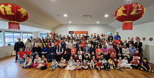 2025年2月9日,驻克赖斯特彻奇总领事何颖出席南坎特伯雷地区华人协会春节庆祝活动,新西兰南岛部长詹姆斯·米格、蒂马鲁区政府代表杰西卡·赫斯特及协会负责人舒婷等100余人出席。