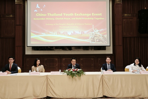 2025年9月1日,驻泰国使馆举办“铭记历史、珍爱和平、共筑友谊”青年交流会,纪念中国人民抗日战争暨世界反法西斯战争胜利80周年。驻泰国大使张建卫出席并致辞,泰国法政大学校长助理刘嘉玲等50余名师生参加。