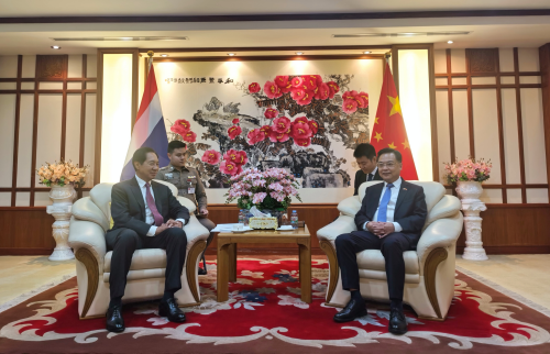 2025年9月10日,驻泰国大使张建卫会见泰国前国会主席、泰中文化经济协会会长颇钦一行。