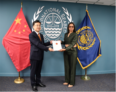 2025年9月30日,常驻国际海底管理局代表王锦峰大使在牙买加首都金斯敦向国际海底管理局秘书长莱蒂西亚·卡瓦略递交全权证书。