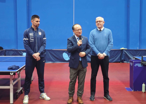 2025年12月20日,驻克罗地亚大使齐前进出席克乒乓球协会活动。克乒协秘书长拉达诺维奇等参加。