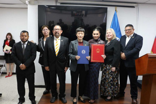 2026年1月27日,驻哥斯达黎加使馆同中美洲议会在危地马拉城议会总部举办中国政府援助物资交接仪式。驻哥斯达黎加大使王晓瑶与古铁雷斯议长签署物资交接证书。