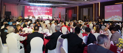 2026年2月13日,驻宿务总领馆举办“温暖迎春·共庆中国年”春节招待会,驻宿务总领事张瑱,华侨华人、中资机构、留学生及华校师生代表等约200人参加。