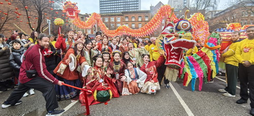 2026年2月15日,驻曼彻斯特总领事唐锐应邀出席由曼彻斯特华人社团联合会主办的2026年春庆巡游活动。曼彻斯特市长格里姆肖等政要、曼联会会长任洁仪等侨社领袖出席,当地数万民众参与。