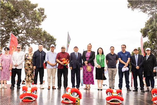 2026年2月22日,驻奥克兰总领事陈世杰出席塔卡普纳海滩马年新春嘉年华开幕式并致辞。新西兰气候变化部长沃茨、工党副党魁赛普洛尼和多位国会议员,当地华侨华人及各界代表约150人参加。