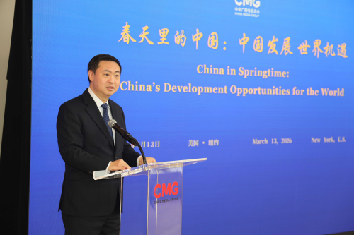 2026年3月13日,中央广播电视总台在纽约举办“春天里的中国:中国发展 世界机遇”全球对话会美国专场。驻美国大使谢锋视频致辞,驻纽约总领事陈立应邀出席并致辞。领区各界近百名嘉宾围绕中国高质量发展、“十五五”规划前景及中美经贸合作机遇等主题深入交流互动。