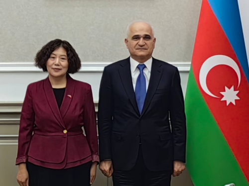 2026年4月3日,驻阿塞拜疆大使鲁梅会见阿副总理穆斯塔法耶夫,共同庆祝中阿建交34周年。