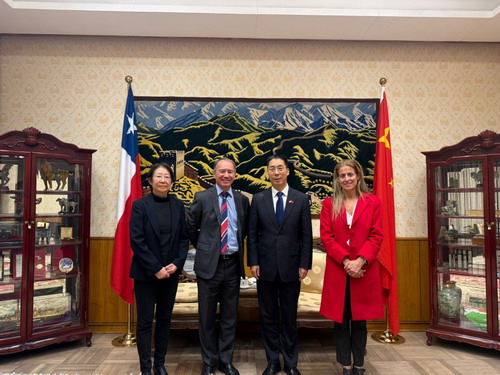 2026年4月24日,驻智利大使牛清报会见智利水果出口商协会主席马兰比奥。双方就加强中智农业贸易可持续发展交换意见。