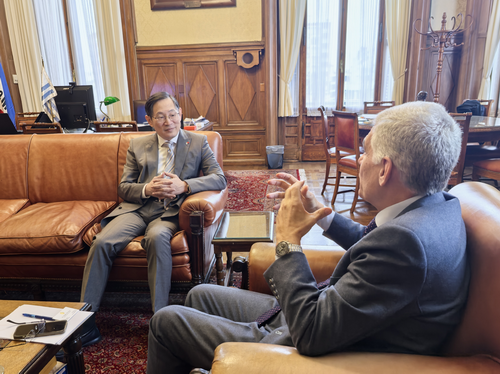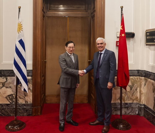 2026年4月27日,驻乌拉圭大使黄亚中拜会乌新任众议长戈尼。