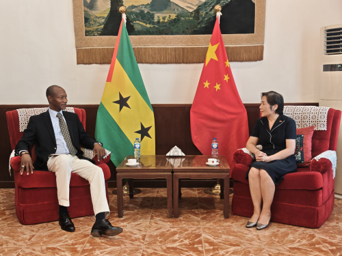 2026年4月27日,驻圣多美和普林西比大使徐迎真会见圣普新任驻华大使邦芬。