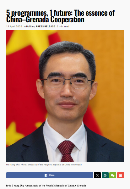 2026年4月17日,驻格林纳达大使杨舒在格林纳达媒体《新今日报》、《信息报》、“今日格林纳达”网发表署名文章宣介共建中拉命运共同体五大工程,主要内容如下: